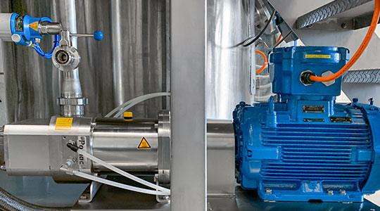 "For application in the ATEX zone at Steinfels Swiss, the pump was equipped with a double mechanical seal and O-rings made of EPDM in accordance with FDA and EC1935/2004, and the base plate was manufactured to customer specifications," said Pettoruto. Since March 2021, the unit has been reliably transporting gel disinfectant at 3 bar at 15 m³/h. In the first six months after the entire ATEX production was renovated, a total of around 700 t of disinfectants were produced there.