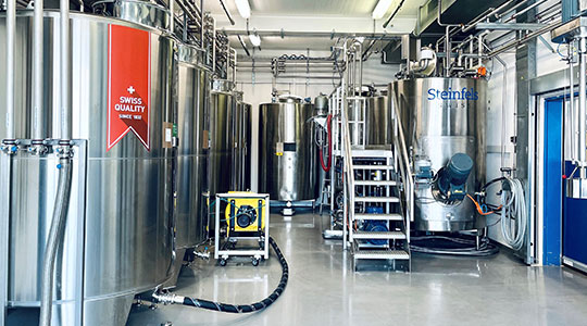 "Due to the coronavirus, the demand for disinfectants has skyrocketed, so in 2020 we decided to renovate our entire ATEX production area – which was already aging – and expand our production capacity," explained Beat Brogli, head of technology at Steinfels Swiss. After the market's demand for disinfection gels also increased significantly, the company decided to design a new stirring tank for the production of gel products and integrate it into the manufacturing process in the course of the conversion measures. A PDSP twin screw pump from LEWA NIKKISO Switzerland AG was purchased to automatically pump the finished products into the tank farm. "In the past, we used mobile pumps and hoses to transfer many products," Brogli added. "The new unit is now permanently installed and integrated into the cleaning process." The automated transfer of the finished bulk enables a safe, ATEX-compliant process.