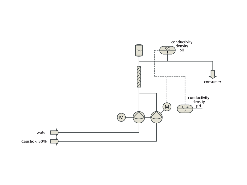 碱溶液,如氢氧化钠,通常指市售浓度不小于 50% 的溶液。碱溶液稀释是一种可控流程,可防止发生沉淀和极端放热反应。